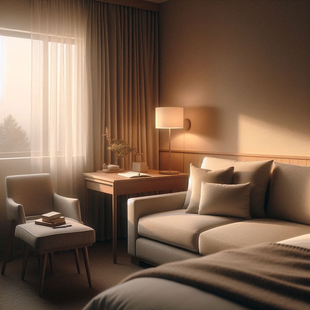 건물 안으로 들어가니 프런트 옆 벽면에 간단한 이용 안내가 표시되어 있어 처음 방문하는 입장에서 흐름을 이해하기 쉬웠습니다. 복도 조명은 과하지 않게 밝았고, 바닥이 물기 없이 말라 있어 바로 신발을 끌고 걸어도 불편함이 없었습니다. 객실까지 이동하는 동안 냄새가 강하게 퍼지지 않아 장시간 머물 공간에 대한 부담이 덜했습니다. 문을 열자마자 침대 위치와 TV, 작은 테이블 배치가 동선에 방해되지 않게 구성되어 있어 짐을 놓고 움직이기 수월했습니다. 창문 근처에는 바람이 천천히 들어오는 틈이 있어 실내 공기가 정체되지 않았고, 조도 조절 스위치가 직관적으로 배치되어 필요한 분위기를 바로 만들 수 있었습니다. 잠시 앉아 있다 보니 천장 높이가 충분해 답답함이 줄어드는 느낌이었습니다.