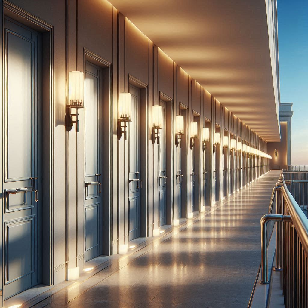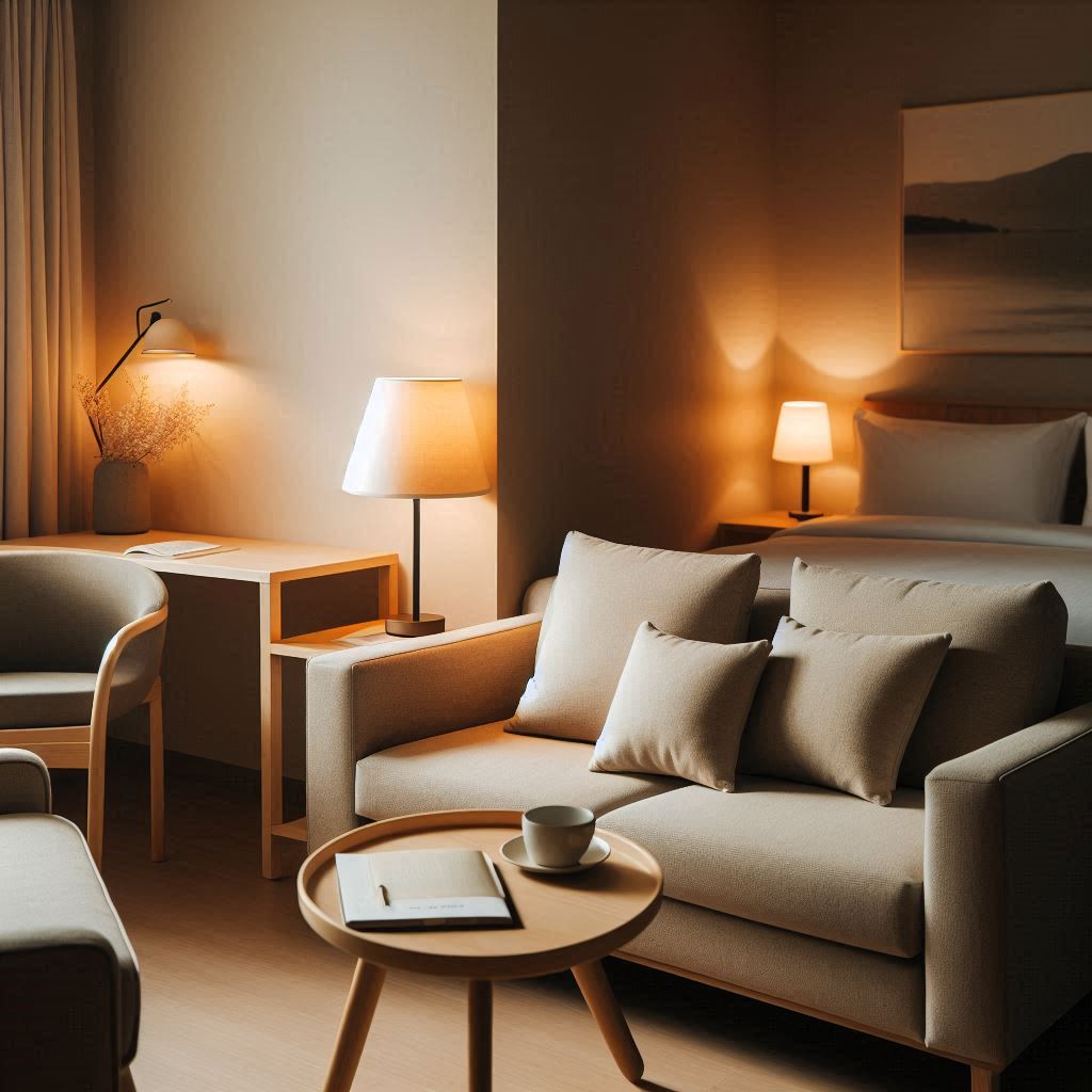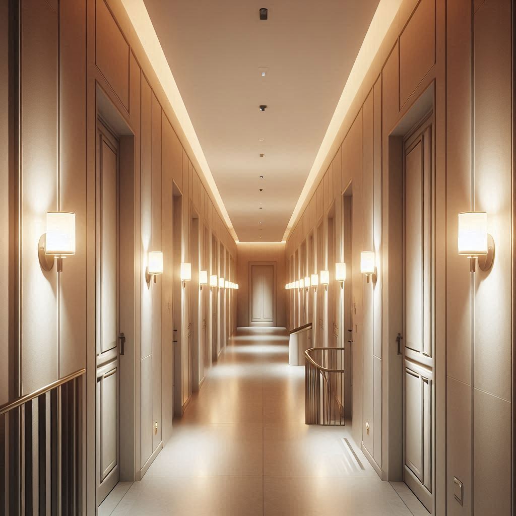 로비를 지나 복도로 들어서면 조명이 지나치게 밝지 않고 부드럽게 확산되어 시선이 자연스럽게 앞으로 이어졌습니다. 바닥은 물기 없이 정리돼 있었고, 벽면 색감이 차분해 늦은 시간 방문임에도 부담스럽지 않은 분위기였습니다. 객실 번호판은 일정한 간격으로 배치돼 있어 통로 끝에서도 쉽게 확인할 수 있었습니다. 객실 문을 열었을 때 침대와 테이블, TV가 서로 간섭하지 않는 동선으로 배치돼 있었고, 창가 쪽 환기구가 조용히 돌아가 실내 공기가 답답하게 느껴지지 않았습니다. 조명 스위치는 입구와 침대 옆 두 곳에 있어 움직임을 최소화해 조절할 수 있었고, 커튼을 살짝 열어보니 외부 조명이 은은하게 들어와 공간 분위기가 부드러워졌습니다. 복잡하지 않은 구조라 처음 이용해도 적응이 쉽게 느껴졌습니다.