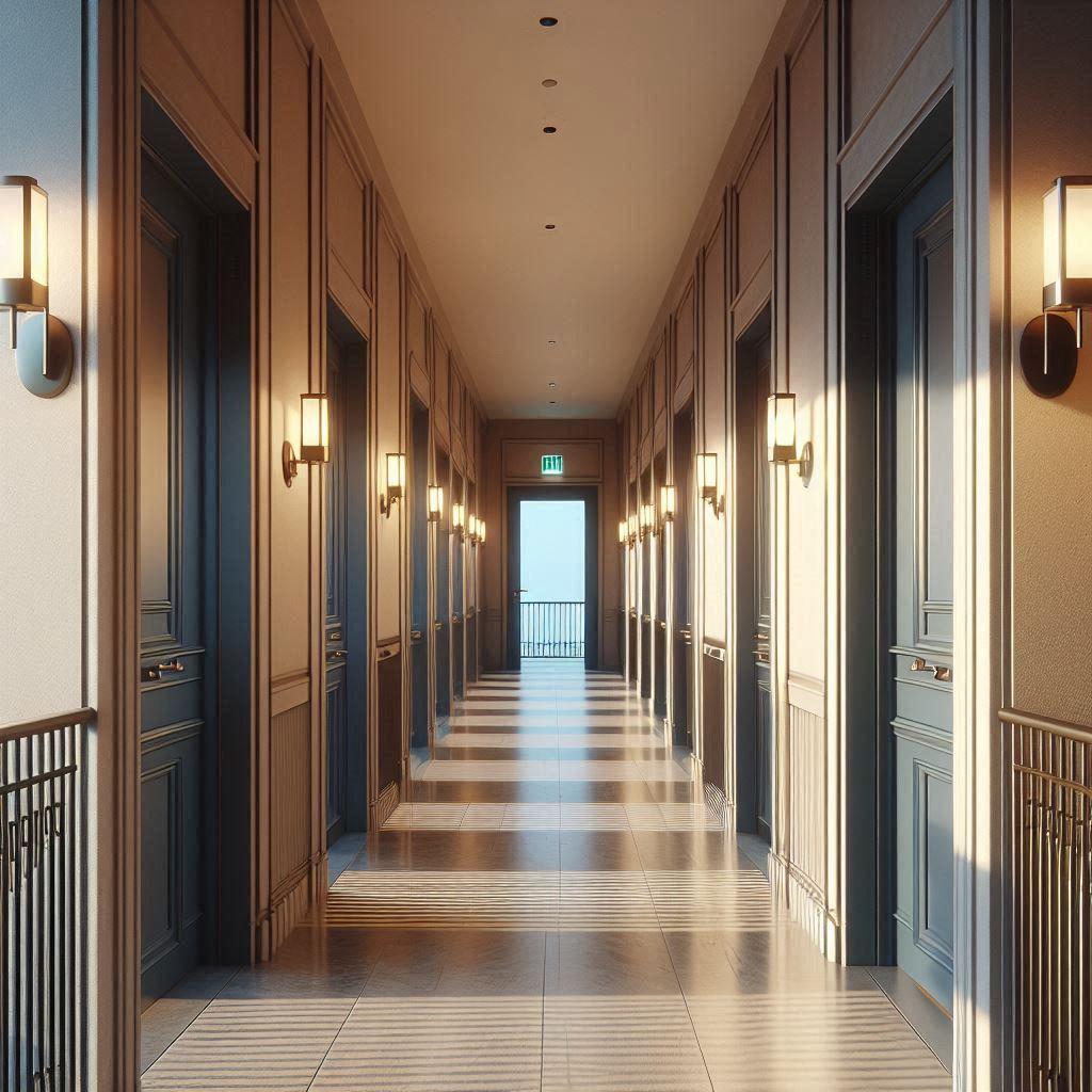 로비에 들어서면 벽면에 안내 문구가 간단명료하게 정리돼 있어 이용 흐름을 빠르게 파악할 수 있었습니다. 복도는 바닥이 건조해 걸을 때 소리가 크게 울리지 않았고, 조명 톤이 일정하게 이어져 시야가 안정적이었습니다. 객실 번호판은 크기가 적당하고 색 대비가 좋아 통로 끝에서도 쉽게 식별할 수 있었습니다. 객실 문을 열고 들어가자 침대와 테이블·TV가 간섭 없이 배치돼 있어 동선이 자연스럽게 이어졌고, 짐을 둘 공간도 여유 있게 확보돼 있었습니다. 창가에서는 환기구를 통해 공기가 부드럽게 흐르는 느낌이 있어 실내가 답답하지 않았으며, 조명 스위치가 구역별로 나뉘어 있어 상황에 맞게 밝기를 조절하기 편했습니다.